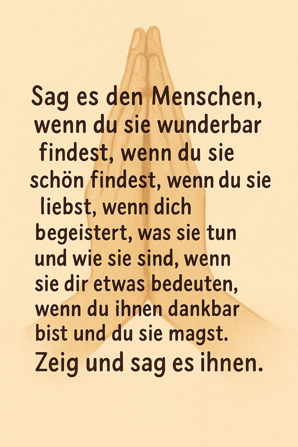 Doch Sprache kann mehr: Sie führt uns über das Ich hinaus. Wenn aus „ich“ ein „wir“ wird, verändert sich die Schwingung. „Wir schaffen das“, „wir gehören zusammen“, „wir sind verbunden“ – solche Worte öffnen Räume für Vertrauen, Gemeinschaft und Herzverbundenheit.